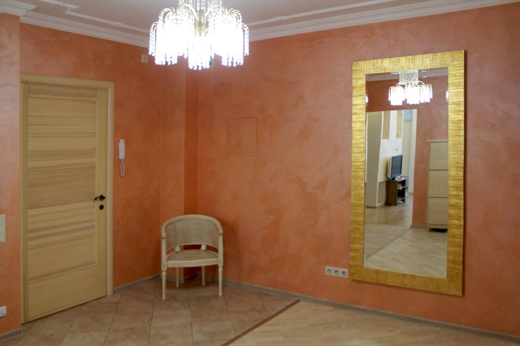 Florentine technique differs from the classic when applying the second layer. Immediately after applying the second layer, using a Venetian trowel or a special tool CLOUD (washer) in a circular and twisting movements create the effect of a tightly curled cloth. The longer the surface is processed, the finer the texture will be.