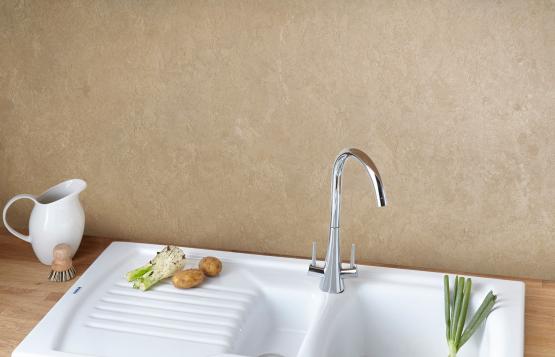 Decorative plaster with the effect of natural travertine.