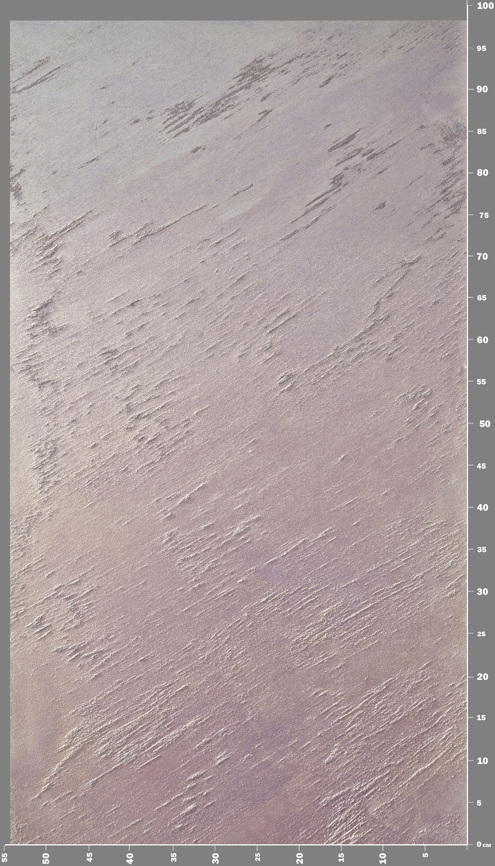After drying the substrate, you can begin to apply a decorative coating DESERT ROSE. Before using, we recommend mixing the material, as the composition contains natural pearl pigment, quartz filler and colorants, which can sometimes settle during long-term storage. Apply the material should be in 2 stages using a special tool: a wide Spanish brush. The first layer should be applied as thinly as possible, covering the entire surface with circular movements of the brush. The main objective of the first layer is to paint the surface, leaving the minimum amount of evenly distributed quartz filler. Drying time of the first layer: 2-4 hours. The second layer is applied much more densely, using the technique of diagonal movement with a brush. This technique will allow forming diagonal dunes on the surface.