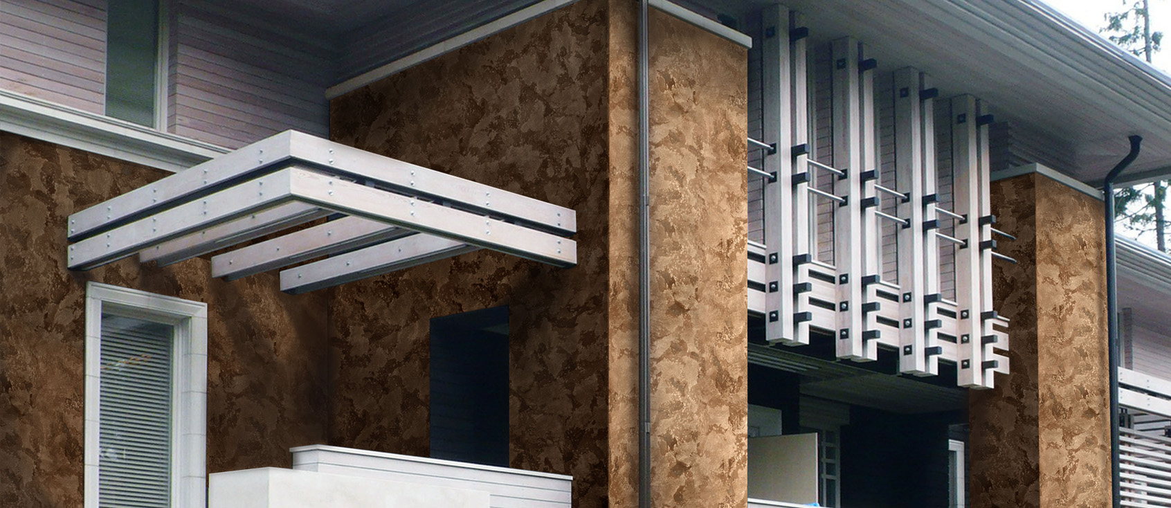 The third and fourth stages are the work with the siloxane-based lessouring decorative coating VELATURA. Glaze is applied only with a sponge, as it allows you to alternate colors with each other, creating the desired effect. Please note that in this design of the coating the dark streaks are more rare than the light ones, so this is reflected in the consumption of the same material relative to the colors. The Lessiruyushchy covering, also carries out a role of additional front protection against direct influence of water and sea salts.