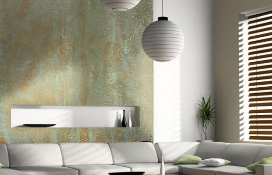 Decorative plaster with the effect of antique copper.