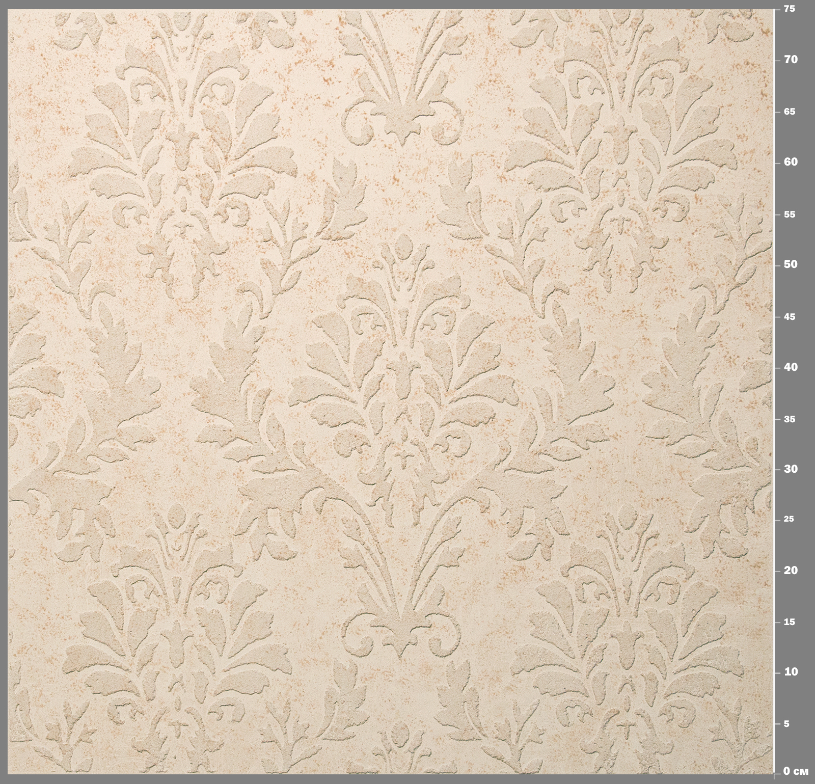The effect of seamless wallpaper with a volumetric stencil pattern. The coating is mineral and environmentally friendly, has excellent strength and moisture resistance.