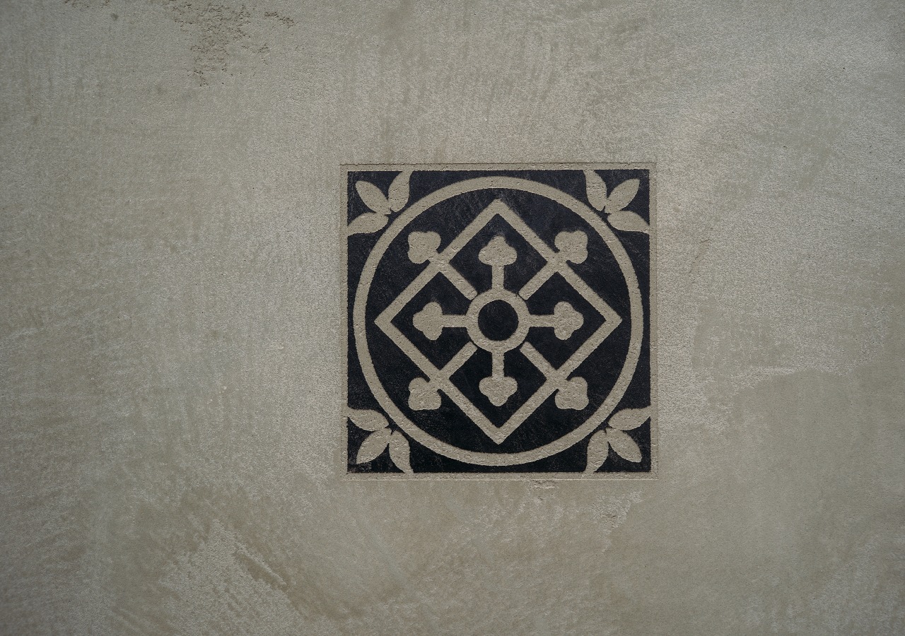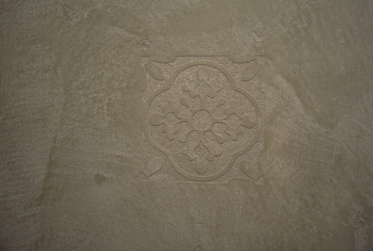 Mount the stencil and apply the next layer of TRAVERTINO IMPERIUM over it. layer thickness determines the volume or depth of the pattern texture. Immediately after application, dismantle the stencil and let the result dry for 24 hours.