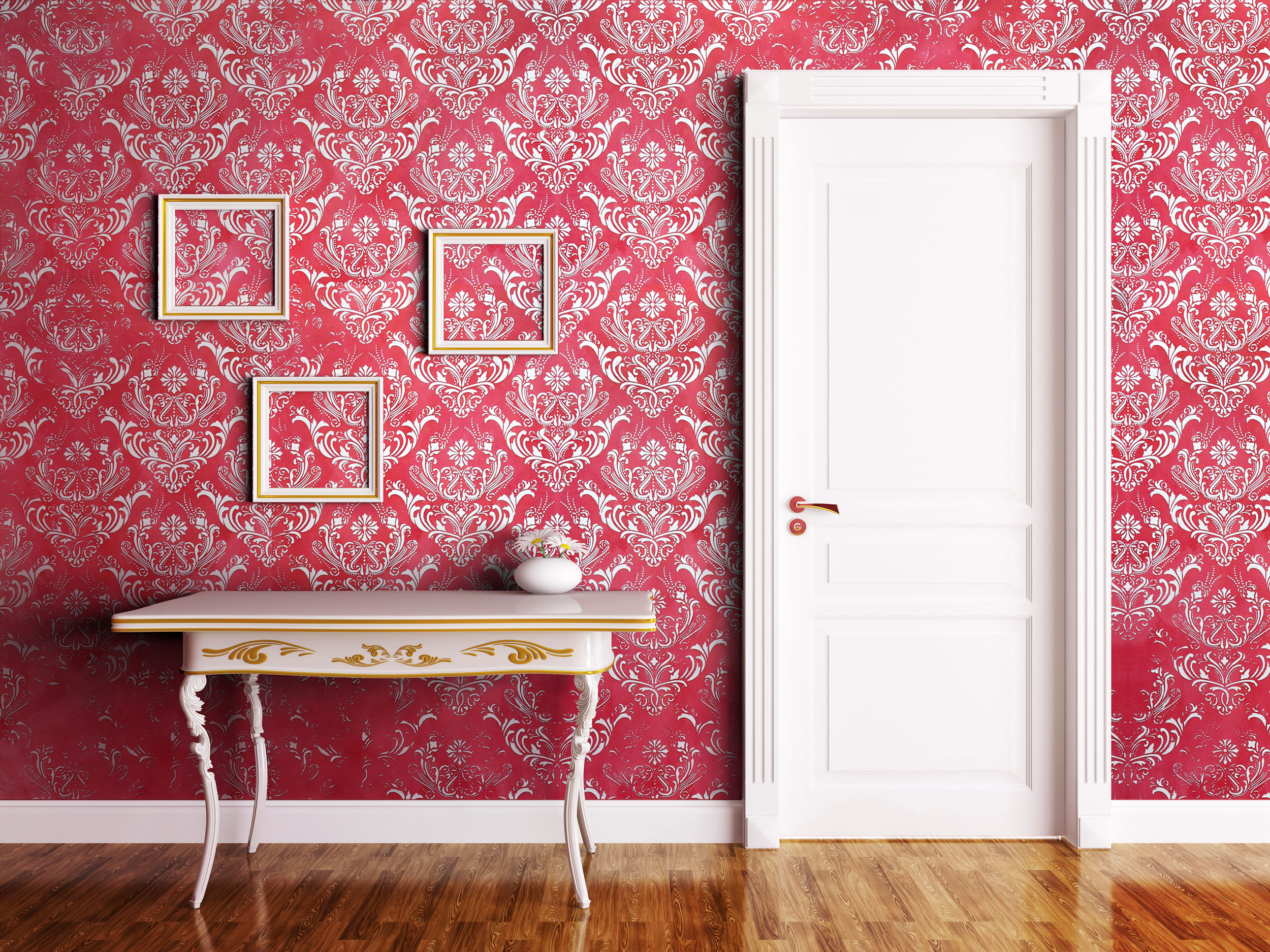 Ornamental white pattern on bright red textured wall
